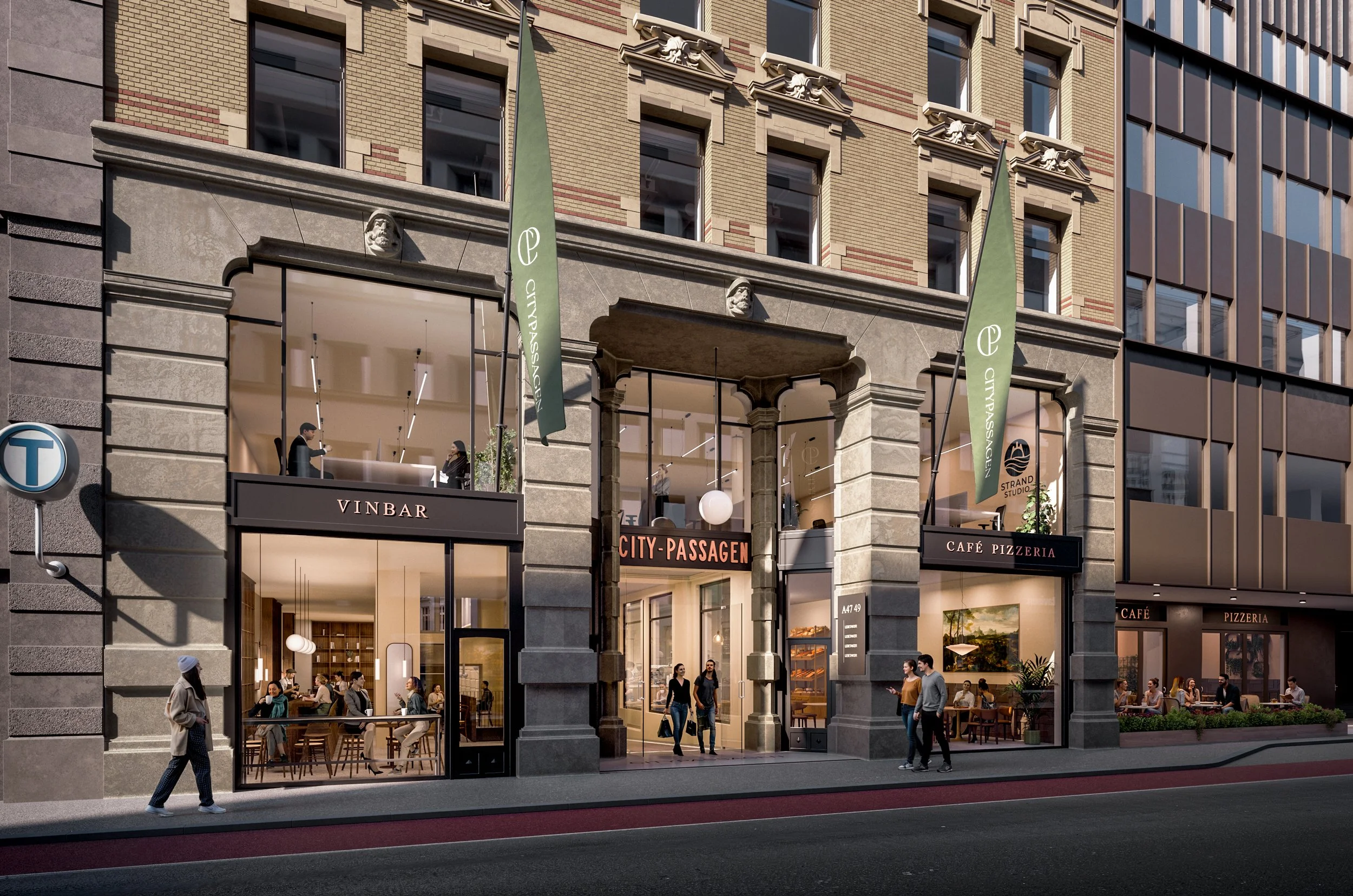 Dyrø og Moen Arkitekter har gleden av å ivareta både arkitektur og interiør i prosjektet. Med en helhetlig tilnærming sikres et samspill mellom form, funksjon og uttrykk – fra fasade til inventar. Ambisjonen er å skape et miljø som både inspirerer og fungerer i hverdagen, der arkitektur, materialbruk og lys understøtter Citypassagens identitet og gir en helhetlig opplevelse av stedet. Resultatet blir et kontorbygg med tydelig karakter, hvor kvalitet og atmosfære står i sentrum.