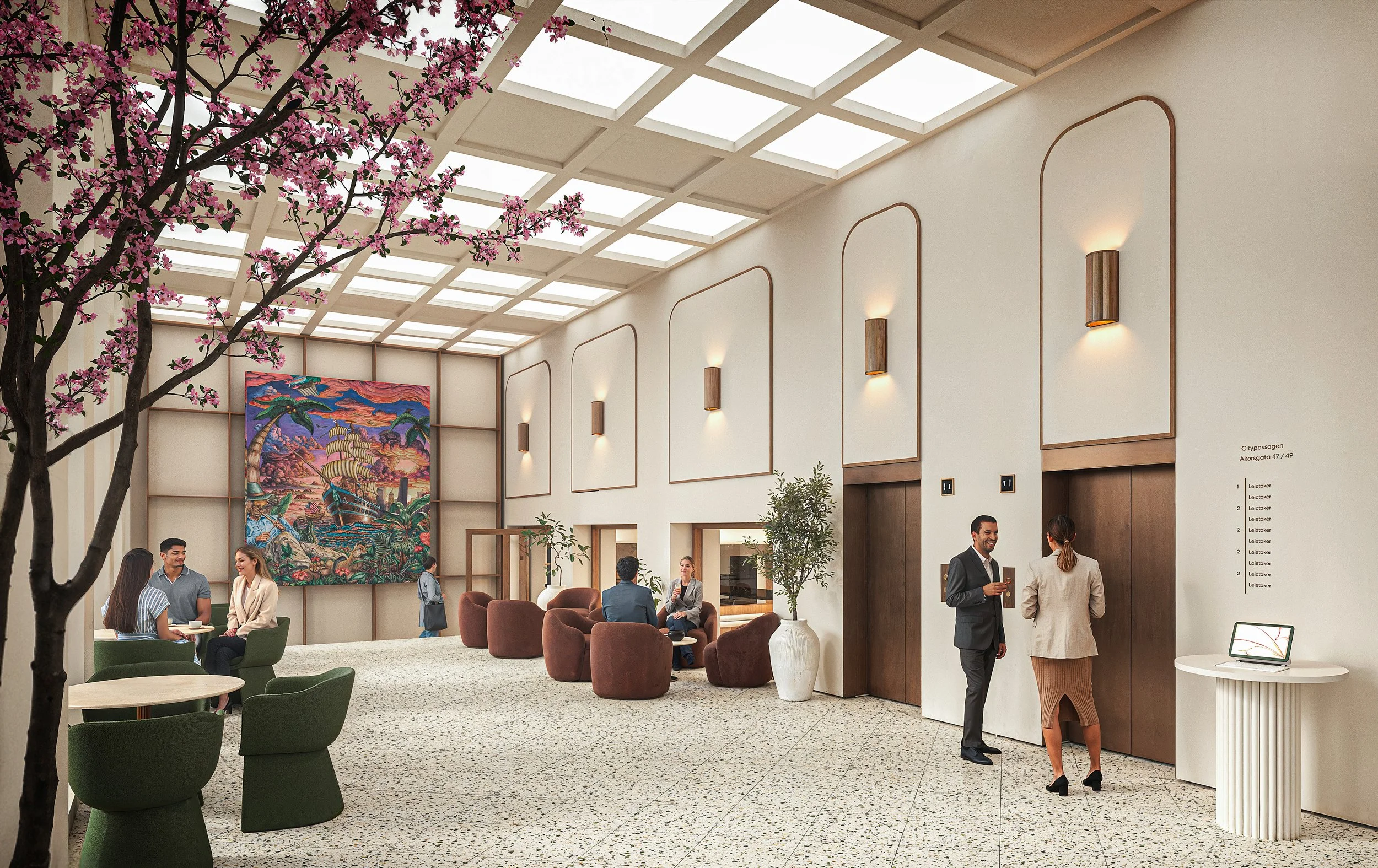 Prosjektet transformerer Akersgata 47 og 49 til et moderne kontorbygg med tydelig identitet og gjennomarbeidede løsninger. Med nytt glasstak over Citypassagen etableres et lyst og klimatisert indre byrom – et naturlig samlingspunkt som gir liv og atmosfære gjennom hele året. Materialer, teksturer og detaljer spiller sammen for å skape en opplevelse av kvalitet og varighet. Helheten skal gi brukerne et inspirerende og funksjonelt miljø som styrker opplevelsen av fellesskap og tilhørighet.