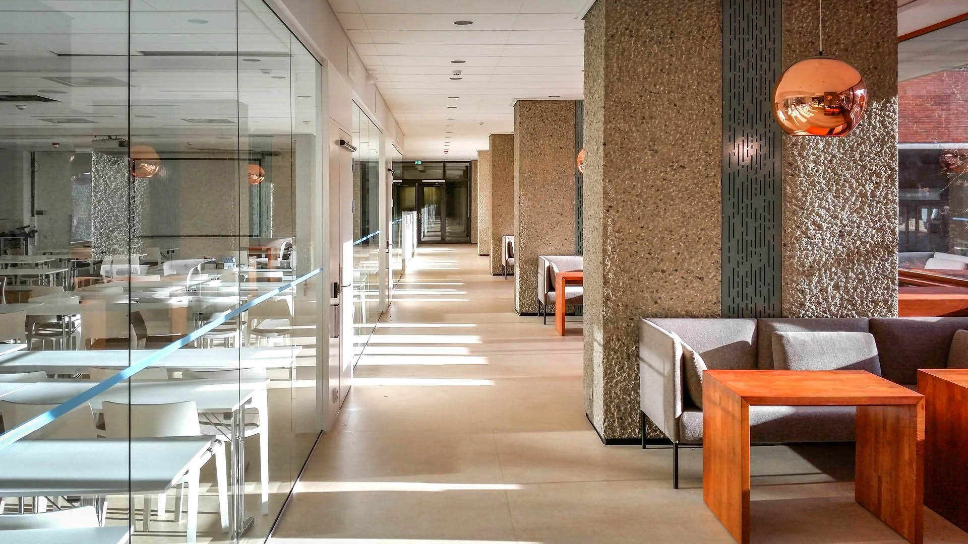 Det har vært lagt vekt på samspill mellom byggets eksisterende materialbruk og den nye utformingen. På den måten ble det skapt en helhetlig løsning som tar vare på bygningens særpreg samtidig som den oppleves oppgradert og tilpasset dagens behov.