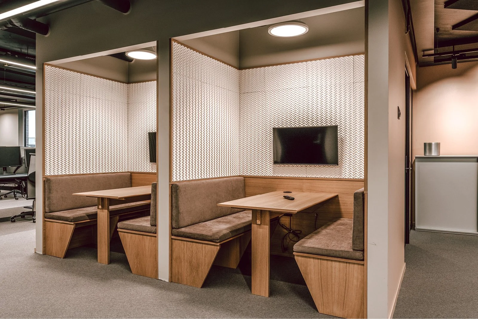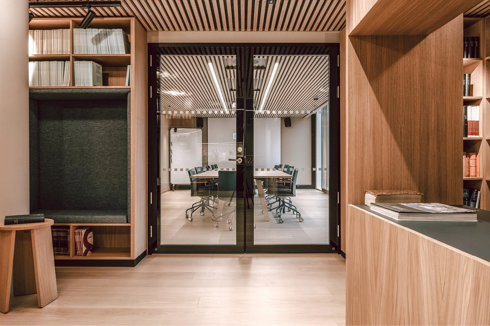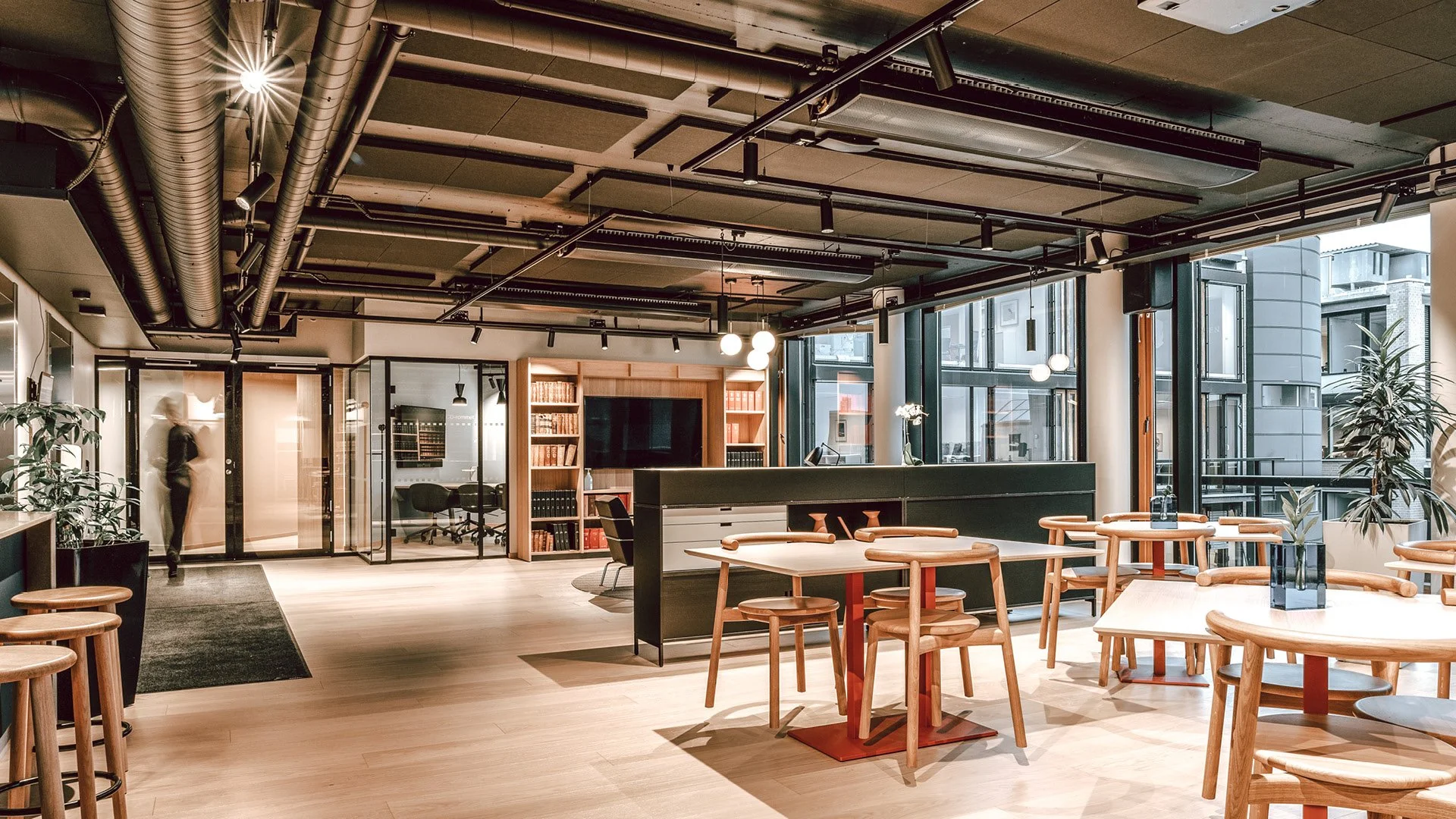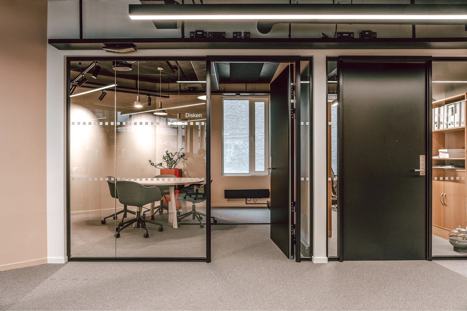 I tillegg til grepene i himlingen har nye overflater og oppgradert møblering løftet lokalene til et helt nytt nivå. Materialbruk og detaljering gir nå en mer eksklusiv ramme rundt arbeidshverdagen, med et uttrykk som både ivaretar funksjonalitet og signaliserer kvalitet. Prosjektet viser hvordan målrettede arkitektoniske valg kan transformere eksisterende kontorlokaler til moderne arbeidsplasser med tydelig identitet og høy brukskvalitet.