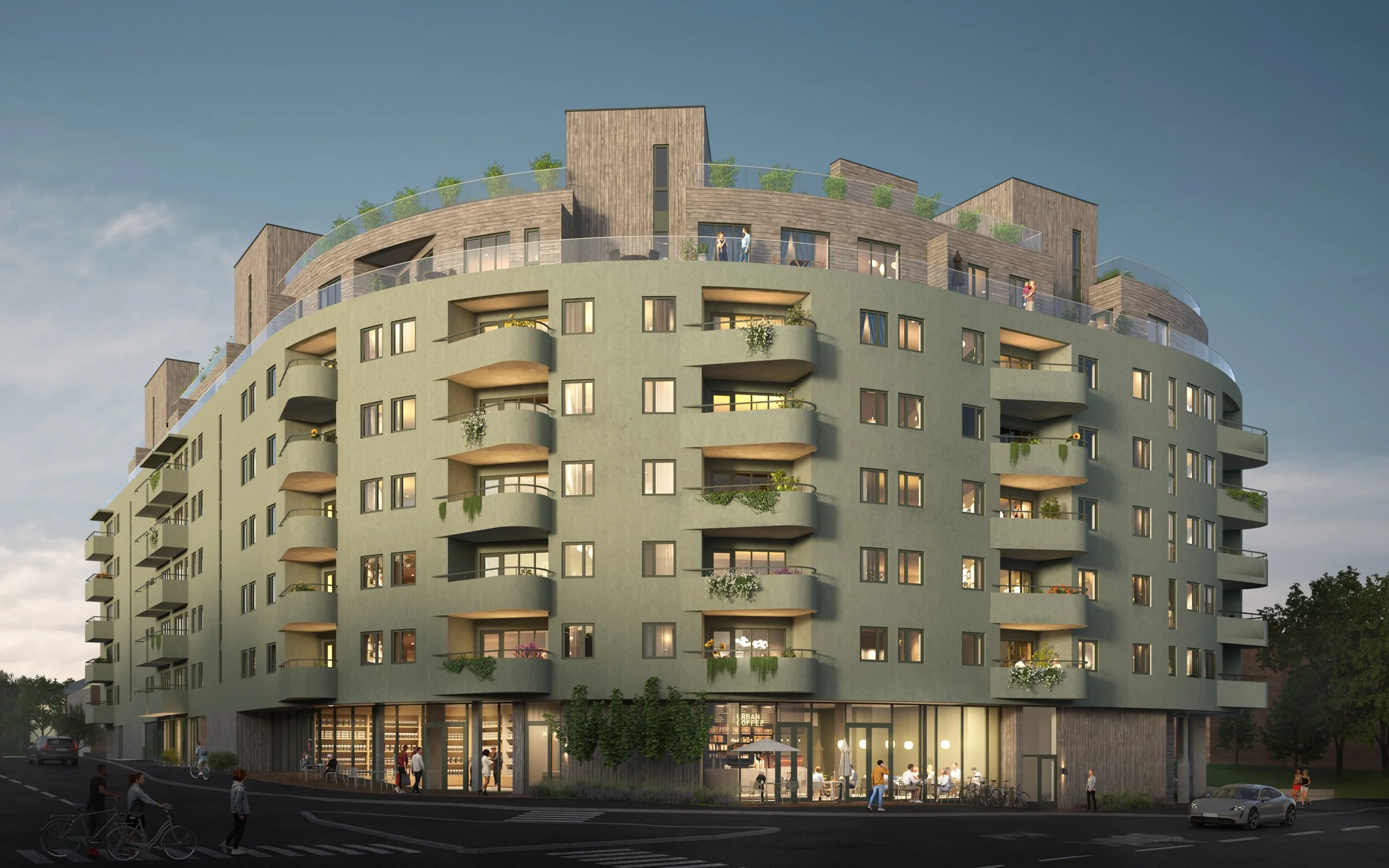 Fagerblom ligger på toppen av Kirkeveien, i et område preget av sterke arkitektoniske identiteter og rik variasjon. Tomten ligger i møtet mellom funksjonalistiske lamellblokker, grønne høyder og klassisk bygårdsstruktur – et punkt der byens mange typologier samles. Prosjektet er utformet som et moderne supplement til eksisterende bebyggelse, med en buet hjørnefasade som tydelig markerer krysset Ullevålsveien–Kirkeveien og fortolker områdets funksjonalistiske arv på nytt.